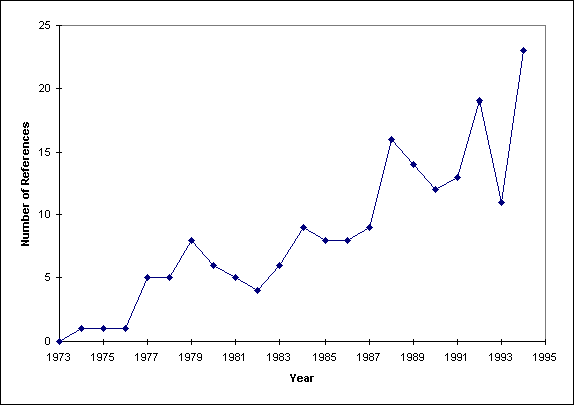 The line plots the annual number of Article 177 references to the ECJ. The source of Article 177 references is data collected by the authors with the help of the European Court of Justice.